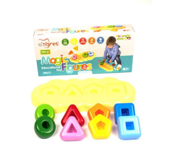 Іграшка розвиваюча "Магічні фігурки", 8 елементів, 4 форми. Граючи, дитина зможе вивчити прості фігури і кольору, підбираючи відповідний отвір для розміщення фігурки. Розмір фігурки - 7 х 7 см.