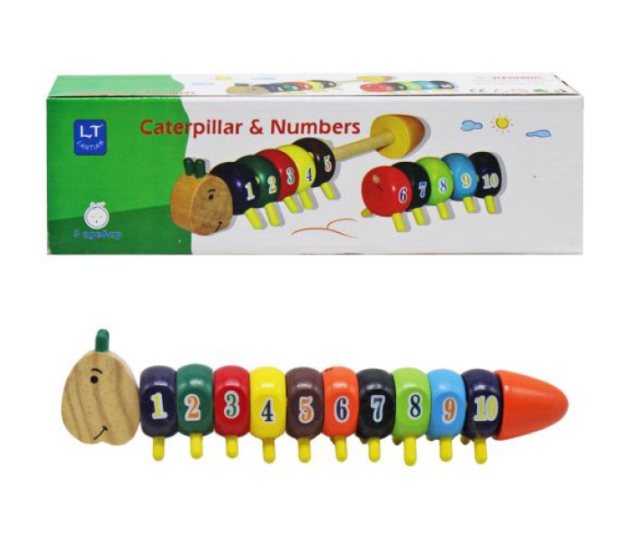 Яскрава деревʼяна іграшка у вигляді гусениці. Складається із 10 пронумерованих секцій. Голова та хвостик гусениці відкручуються, що дозволяє знімати секції та розставляти їх у різному порядку. Такі ігри допоможуть дитині легко і весело навчитися рахувати. Розмір іграшки: 26х4х5 см.
