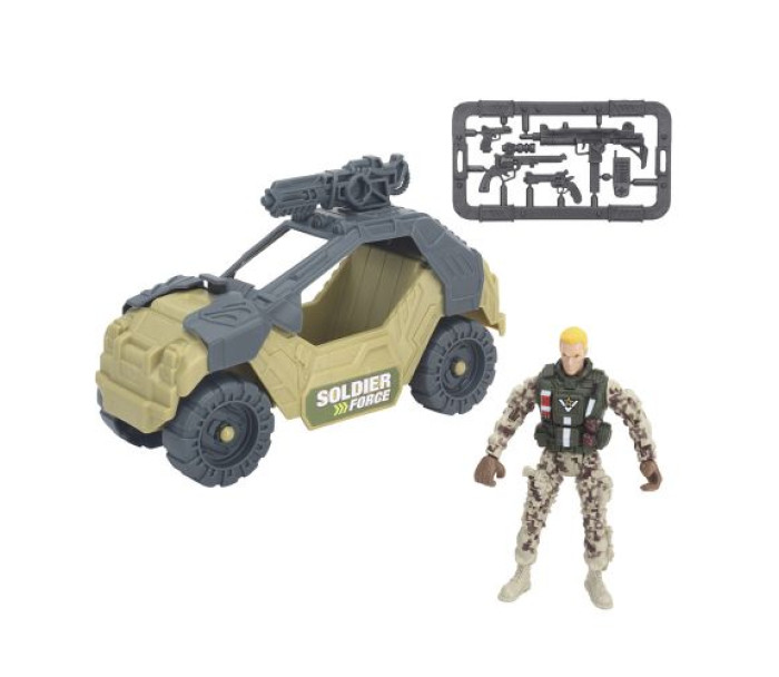 Комплектація: Основні компоненти: - Іграшка Джип – 1 шт.; - Фігурка (Солдатик) – 1 шт.; - аксесуари.
