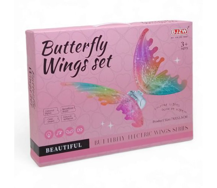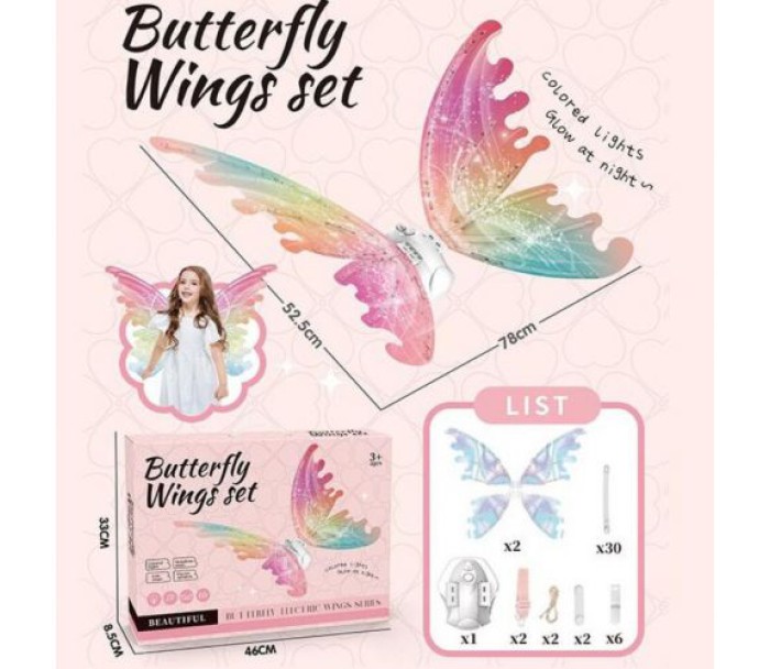 Цей набір крил ідеально підходить для будь-якої дитини, яка хоче одягнутися феєю на костюмовану вечірку. Процес установки дуже простий, і після цього крила будуть світитися і махати, відтворюючи музику через задній динамік. Ремінці крил можна регулювати відповідно до ваших уподобань. Розмір крилів - 78*52.5 см