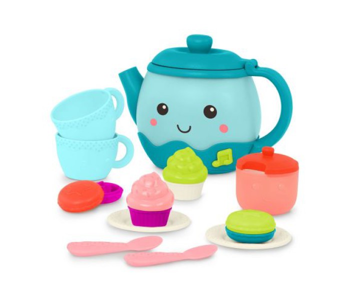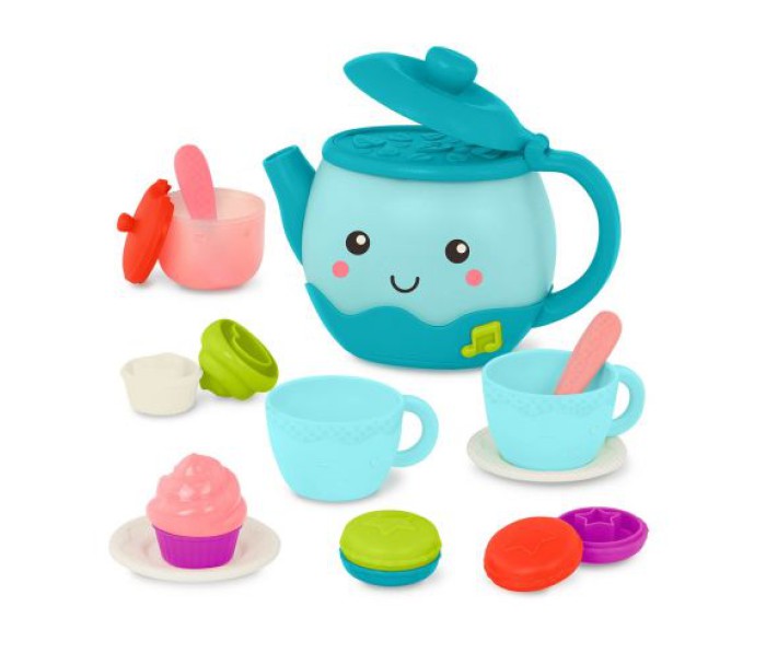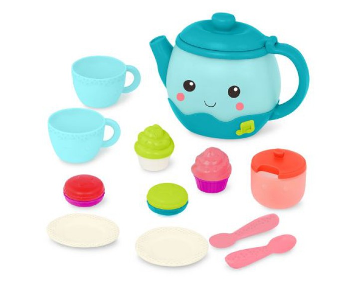 - Включає 17 предметів: 1 музичний чайник, 2 чайні чашки, 2 ложки, 2 тарілки, 4 деталі макаронсів, 4 шматочки кексів і 1 цукорницю з кришкою.