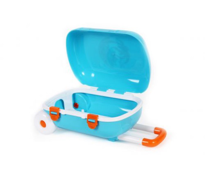 Яскравий пластиковий валізку з висувною ручкою. Закривається на пластикові засувки. Всередину можна скласти невеликі іграшки, канцелярію, або інші потрібні для дитини речі. Розмір валізи: 35 х 23 см. Висота від підлоги: 50 см.