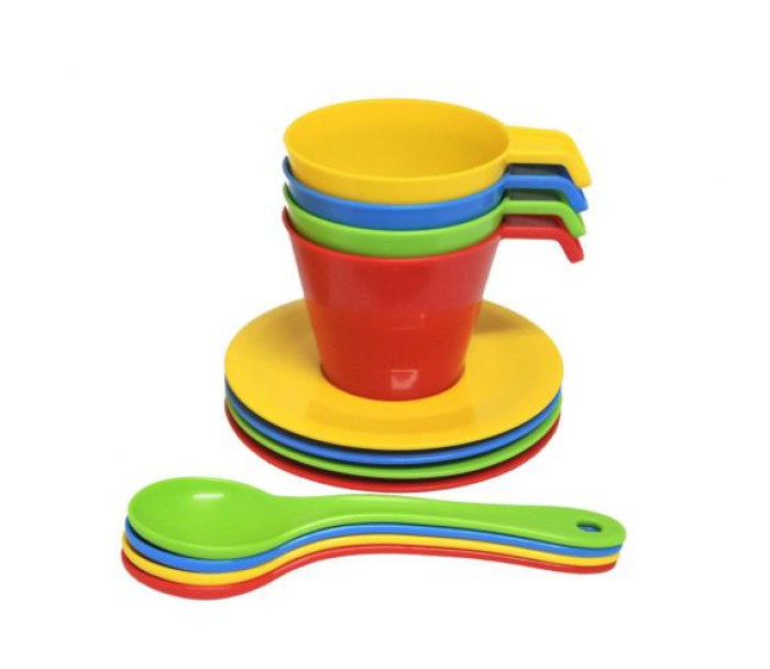 Набір ігрового пластикового посуду включає 12 елементів: тарілочки, ложки, чашки (по 4 шт кожного виду посуду). Комплект виконаний з якісного та безпечного пластику. Підходить для дітей від року.
