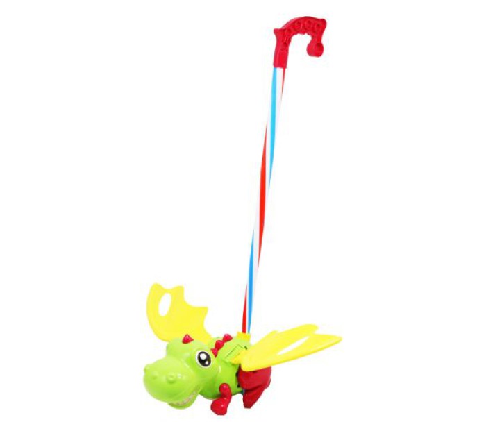 Пластикова каталка із ручкою у вигляді динозаврика. У наборі є крильця, які потрібно вставити в спеціальні отвори з обох боків іграшки. Під час руху динозаврик рухає крилами та лапками. Розмір іграшки (без ручки) – 17х14х40 см. Висота разом з ручкою – 54 см. Виконана з якісного пластику. Для дітей віком від 4-х років.