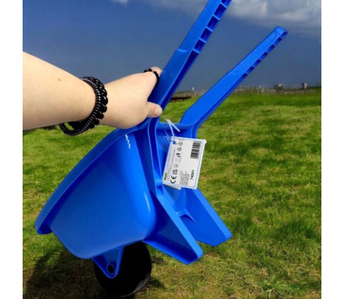 Дитяча тачка - чудове рішення для ігор на свіжому повітрі! Підходить для перевезення піску, іграшок та інших дрібниць. Виготовлена із міцного пластику, має зручні ручки та стійку конструкцію. Довжина виробу - 54 см, пластикове колесо діаметром 11 см забезпечує легкість пересування. Ідеальна для дачі, пляжу чи пісочниці.