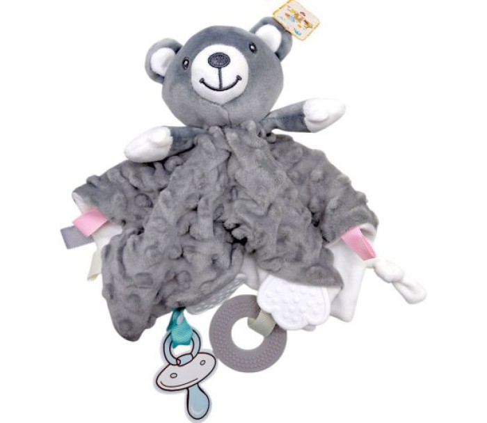 Брязкальце-комфортер створене для заспокоєння та забезпечення комфорту малюка з перших місяців життя. Іграшка має приємну на дотик текстильну частину у вигляді милої тваринки, яку зручно тримати маленькими ручками, обіймати та притискати під час відпочинку або сну. Гумовий прорізувач допомагає полегшити дискомфорт під час прорізування зубів, а брязкальце всередині м’яко привертає увагу дитини. На брязкальці є петелька для підвішування. Виготовлено з якісних та безпечних матеріалів.