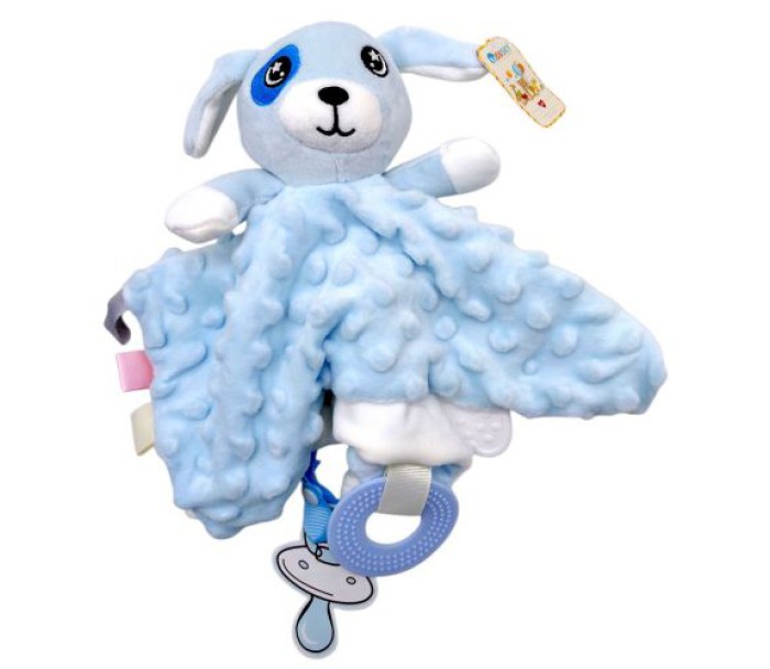 Брязкальце-комфортер створене для заспокоєння та забезпечення комфорту малюка з перших місяців життя. Іграшка має приємну на дотик текстильну частину у вигляді милої тваринки, яку зручно тримати маленькими ручками, обіймати та притискати під час відпочинку або сну. Гумовий прорізувач допомагає полегшити дискомфорт під час прорізування зубів, а брязкальце всередині м’яко привертає увагу дитини. На брязкальці є петелька для підвішування. Виготовлено з якісних та безпечних матеріалів.
