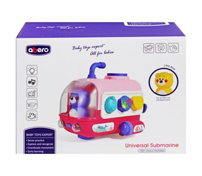 Музична іграшка-сортер "Субмарина" із боцманом у вигляді чарівного ведмедика. З боків підводного човна розташовані віконця різних форм, у які дитина зможе вставляти відповідні фігурки. Кожна фігурка в наборі наповнена маленькими кульками, які видають звук, що нагадує брязкальце. При включенні у субмарини починають світитись фари, іграшка відтворює дитячі мелодії. Довгим натисканням на кнопку включення можна включити режим їзди: субмарина їздитиме у довільних напрямках. У наборі є шнурок, який можна прикріпити до іграшки і возити її за собою. Розмір іграшки у зібраному вигляді: 20х27х12 см.