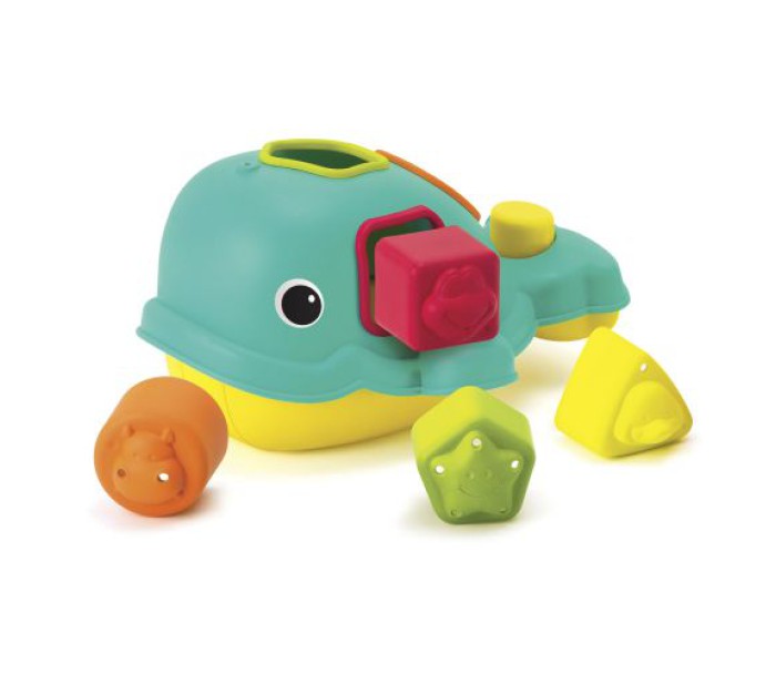 Розвиваючий сортер у вигляді китеня допоможе навчити малюка розрізняти форми та кольори. Гра з сортером сприяє розвитку дрібної моторики рук. Відсортуйте фігури та допоможіть малючкові знайти відповідні фігуркам отвори. Також з китеням весело гра у воді, адже натиснувши на кнопку, що розташована на хвості, кит бризкає водою. Іграшка безпечна для використання, приємна на дотик.