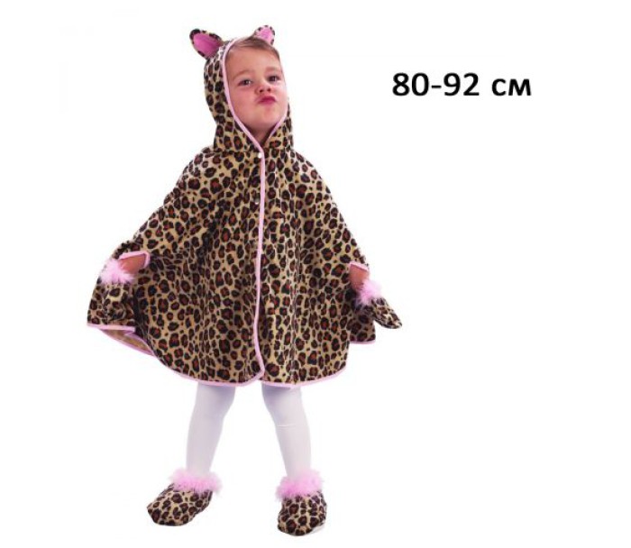 Гарний карнавальний костюм "Леопардик". У наборі є: накидка з капюшоном і рукавички. Розрахована на зростання 80-92 см. Виконаний з якісних і безпечних матеріалів.