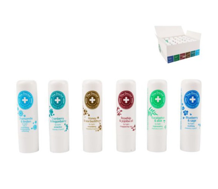 Набір гігієнічних помад DD включає 30 стіків по 3,6 г з різними активними компонентами: чорниця і шавлія, евкаліпт і алое, шипшина і олія жожоба, мед і обліпиха, журавлина і брусниця, ромашка і липа. Помади містять вітаміни A і E, забезпечують живлення, захист і догляд за губами протягом усього дня. Кожен стік має індивідуальний колір корпусу за смаком/композицією.