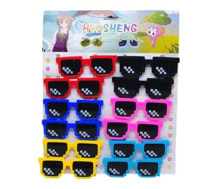Сонячні окуляри дитячі в піксельному стилі - стильний та яскравий аксесуар для маленьких модників! Розмір – 13 см, зручно сидять на обличчі дитини. У комплекті 12 штук у шести різних кольорах – ідеально для роздрібного продажу, подарунків чи дитячих заходів.