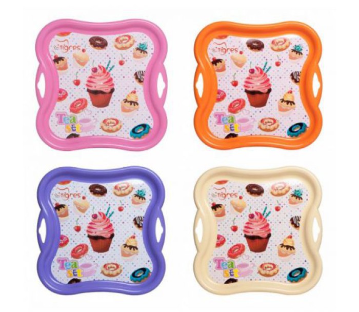 Піднос для посуду "Солодка вечірка". Яскравий пластиковий піднос для ігрової кухні, з принтом.