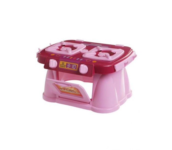 Яскравий кухонний набір з плитою та безліччю аксесуарів для готування. У комплекті є лопатка, ківш, друшляк, виделка для риби, каструля та сковорідка. Плита виконана у вигляді коробки, що дозволяє складати дрібне приладдя всередину. Ручки на плиті обертаються. Розмір – 26х19х16 см. Виконано з міцного пластику.