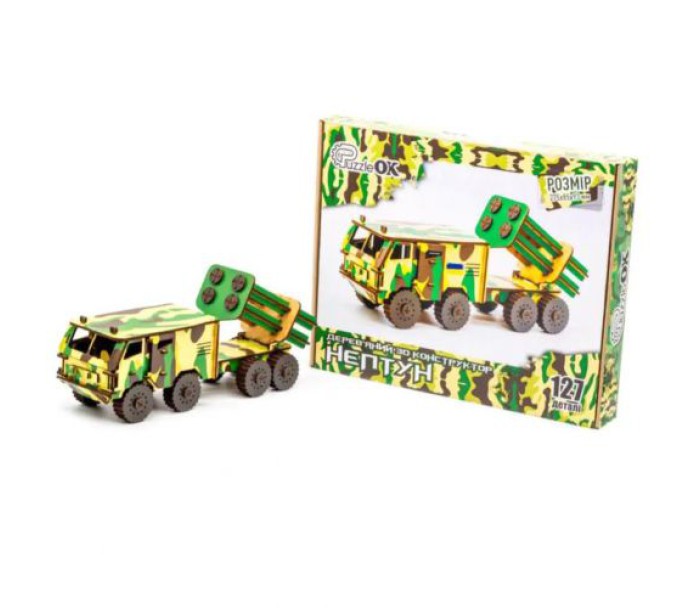 Дерев'яний 3D конструктор складається з 127-ми деталей. Набір виконаний з екологічних та безпечних матеріалів. Складання конструкції порадує як дітей, так і дорослих. Розмір фігурки у зібраному вигляді: 27.5х8.5х9 см. Виготовлено в Україні.