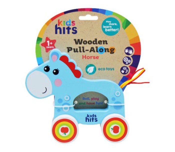 Дитяча іграшка, виготовлена з натурального дерева. Вона має форму конячки з рукояткою для зручності тримання. Коли дитина штовхає або котить цю іграшку по підлозі, вона рухається, що сприяє розвитку моторики, координації та уяви малюка. Якісно пофарбована та лакована. Для дітей віком від одного року. Розмір – 18 х 6 х 16 см.