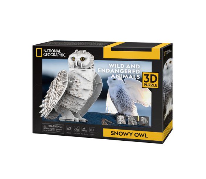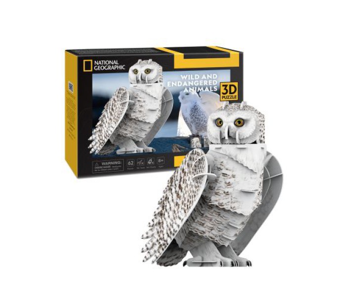 Розвиваючий 3D пазл для дітей та дорослих CubicFun у вигляді Сніжної сови з підставкою-декором. Ця серія National Geographic Зникаючі тварини випущена на честь 50-річчя Закону про види, що що знаходяться на межі зникнення