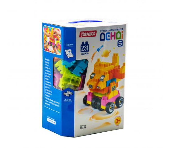 Яскравий пластиковий конструктор, що складається з 231 елемента. З яскравих пластикових детальок можна зібрати безліч різних фігурок. Готову фігурку можна прикрасити цікавими наклейками, які також йдуть в комплекті.