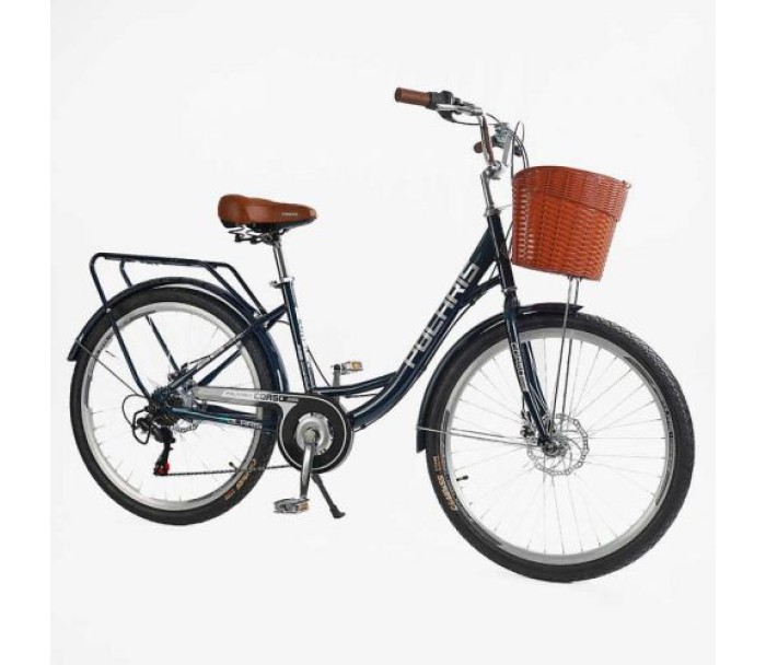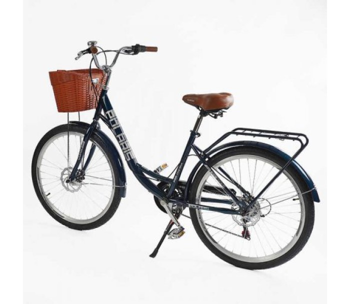 Велосипед міський Corso «Polaris» 26`` PS-12833 + КОШИК СИНІЙ сталева рама 16.5``, Shimano 7 швидкостей, корзина, багажник