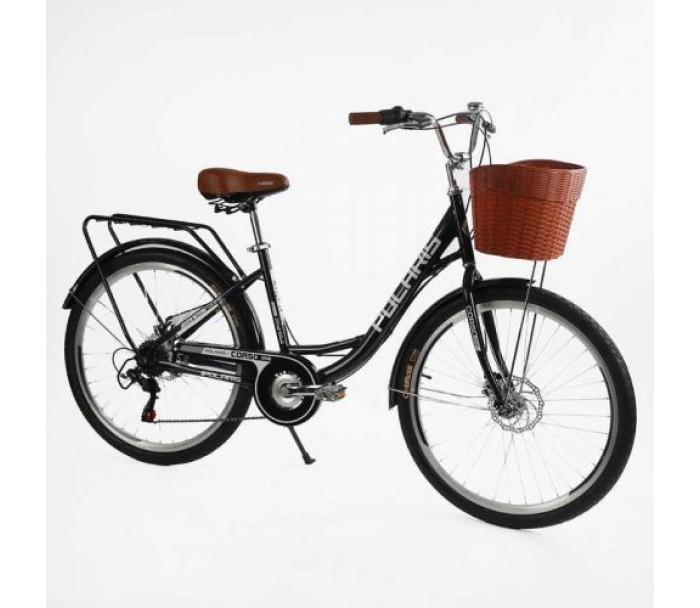 велосипед, міський, corso, polaris, 26``, 36620, кошик, баклажановий, сталева, рама, 5``, shimano, швидкостей, корзина, багажник, Corso, PS-36620
