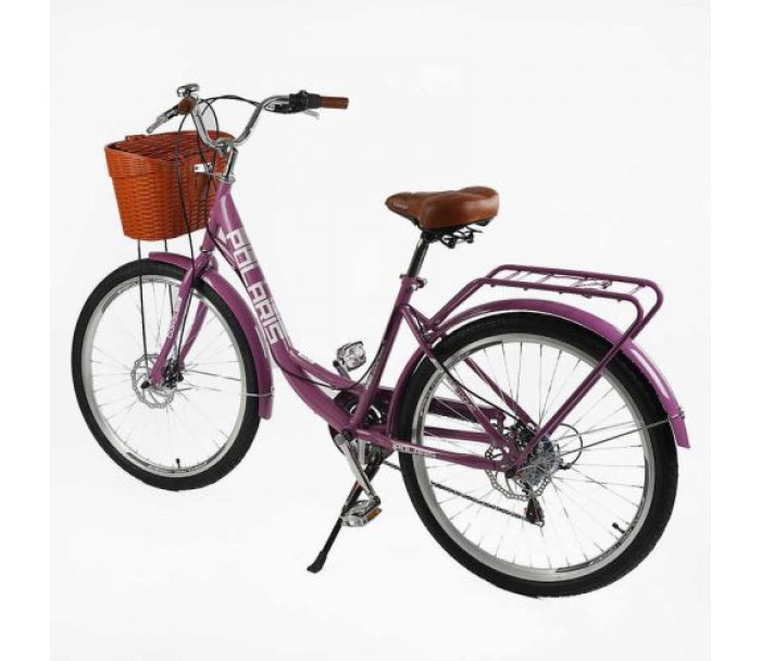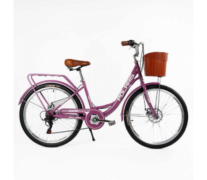 Велосипед міський Corso «Polaris» 26`` PS-91606 + КОШИК  сталева рама 16.5``, Shimano 7 швидкостей, корзина, багажник