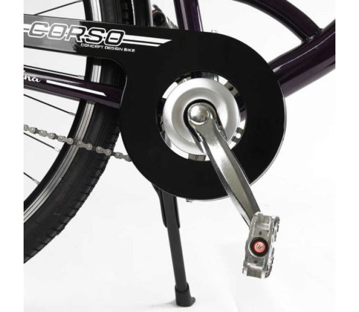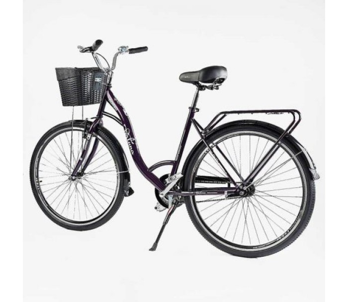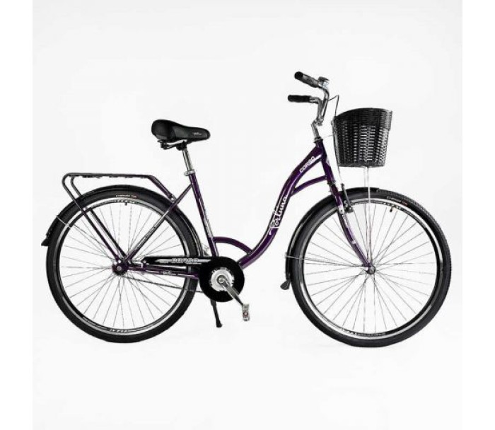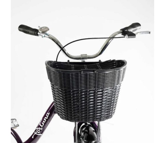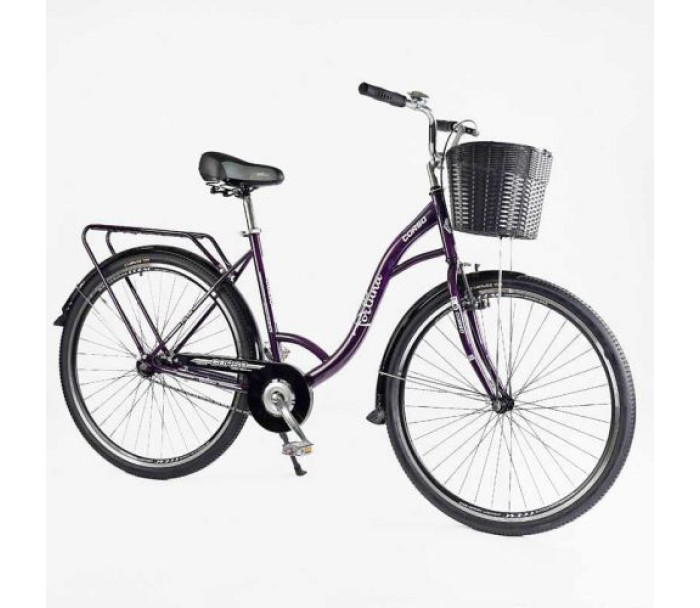 Велосипед міський Corso «FORTUNA» 28`` FR-28077 + КОШИК ТЕМНО-ФІОЛЕТОВИЙ, одношвидкісний, сталева рама 20``, корзина, багажник