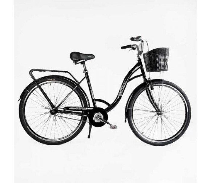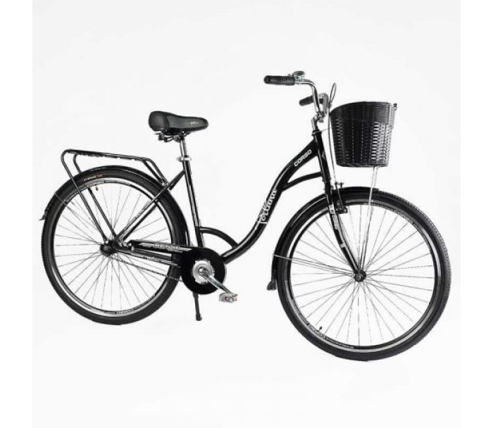 велосипед, міський, corso, fortuna, 28``, 28175, кошик, чорний, одношвидкісний, сталева, рама, 20``, корзина, багажник, Corso, FR-28175