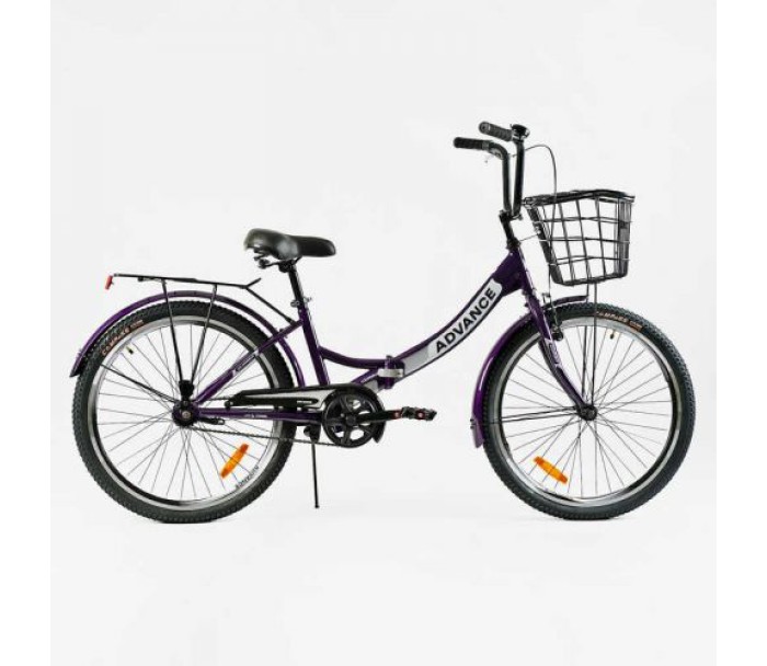 Велосипед складний Corso 24`` Advance, одношвидкісний, складна сталева рама 14``, корзина, багажник