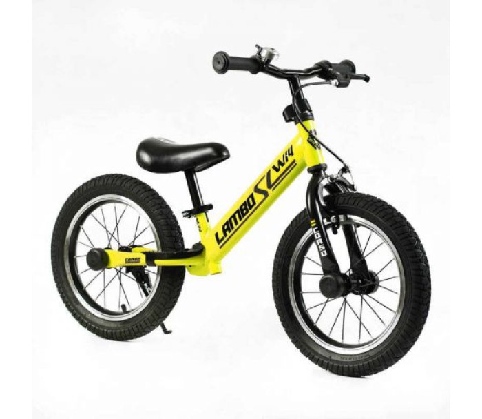 Велобіг CORSO LAMBO LB-14704 (1) сталева рама, ручне гальмо, колеса надувні резинові 14’’, алюмінієві обода, підставка для ніг, підніжка, дзвоник