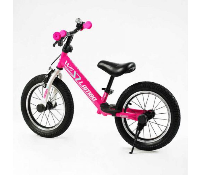 Яскравий велобіг з барвистими написами оснащений зручним сидінням, великими колесами і міцною рамою, що дає змогу його використовувати тривалий час і забезпечує малюкові комфортне безпечне катання.