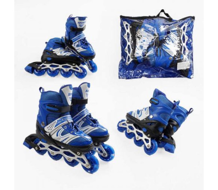 Ролики (розмір 29-33; колір – СИНІЙ; колеса PU, устілка 18-20 см, ПЕРЕДНЄ КОЛЕСО СВІТЛО, d – 6.5 см) в сумці