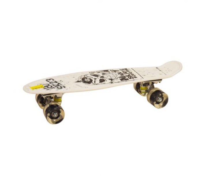 Яскравий Пенні Борд (скейт) з оригінальним малюнком черепа. При русі борда світяться колеса. Матеріал коліс: PVC (полівінілхлорид). Діаметр коліс: 6 см. Дека має протиковзку поверхню. Матеріал деки: пластик. Підвіска: алюміній.