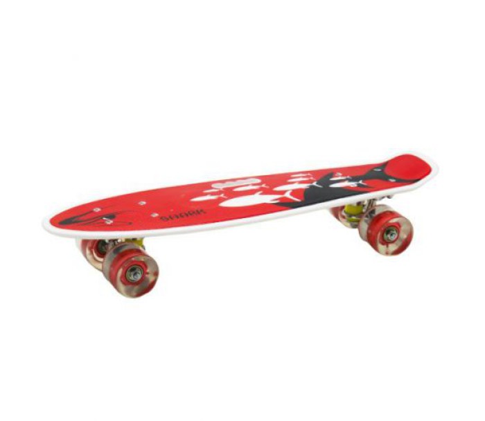 Пенні Борд. Легка дека зроблена з міцного формованого пластика. Підвіска скейта з міцного, але легкого алюмінію. Колеса PU, зі світлом, d = 6 см. З ручкою. Максимальне навантаження до 70 кг.