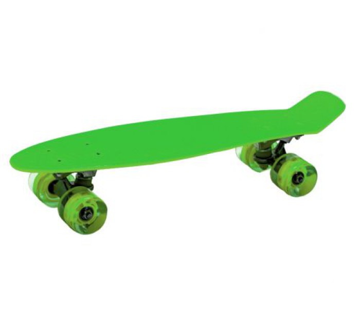 Пенні Борд. Легка дека зроблена з міцного формованого пластика. Підвіска скейта з міцного, але легкого алюмінію. Колеса PU, зі світлом, d = 6 см. Максимальне навантаження до 70 кг.