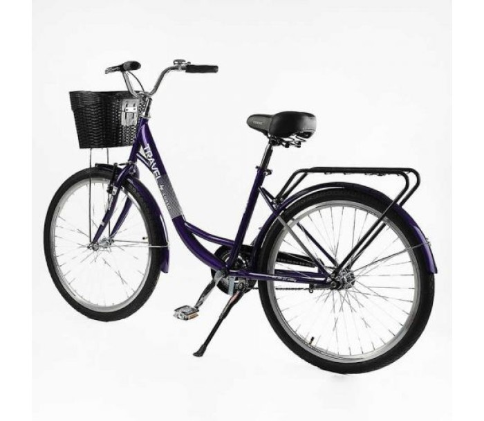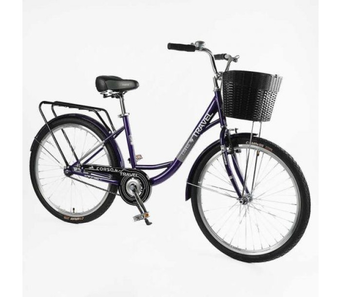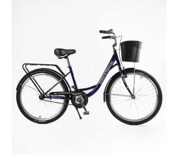 Велосипед міський Corso «TRAVEL» 26``, одношвидкісний, сталева рама 16.5``, корзина, багажник
