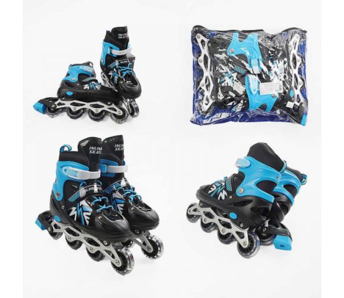 Ролики (розмір 29-33; колір - синій; колеса PVC, устілка 16-19 см, ПЕРЕДНЄ КОЛЕСО СВІТЛО, d - 6.5 см) в сумці