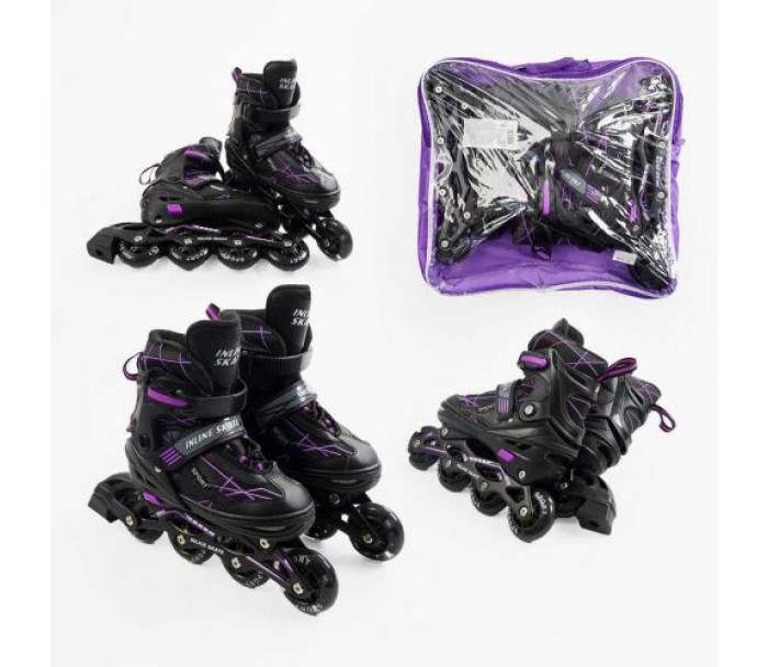 Ролики (розмір 39-43; колір – ФІОЛЕТОВИЙ; колеса PU, устілка 24-28 см, ПЕРЕДНЄ КОЛЕСО СВІТЛО, d – 6.5 см, в сумці)