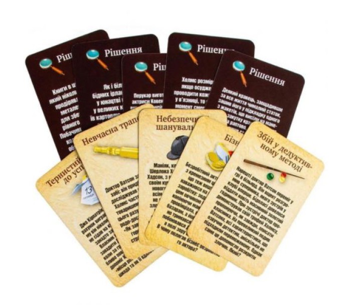 Під час цієї захопливої гри учасники долучаються до розкриття найцікавіших справ з детективної практики Шерлока Холмса. Ведучий зачитує короткий опис справи. Завдання гравців - за допомогою запитань якомога точніше встановити причину події, що відбулася. Гра розрахована на 2-6 гравців віком від 12-ти років.