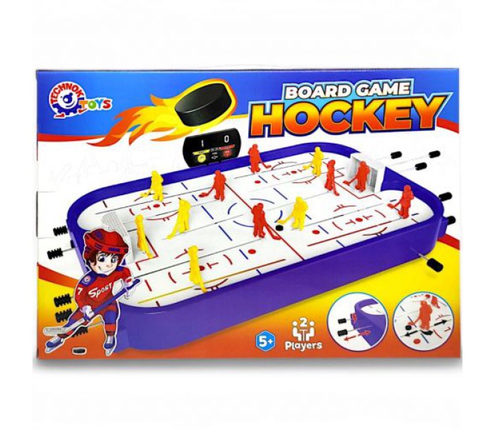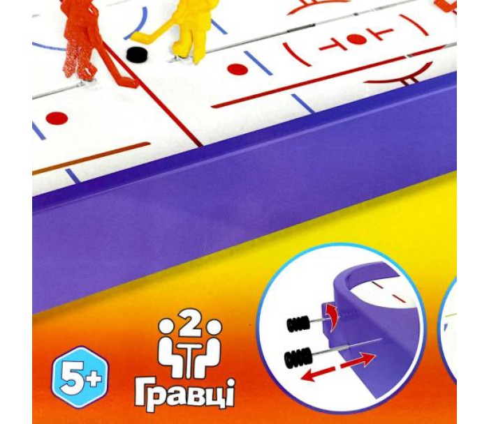 Комплектація: Поле для гри з ручками управління, знімні ворота, табло, 12 фігур хокеїстів, 2 шайби