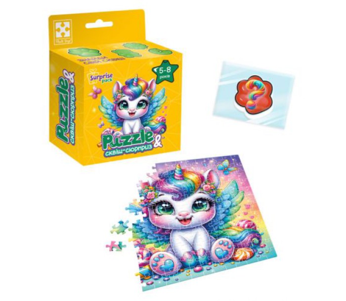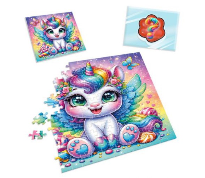 Набір пазлів "Єдиноріжка"- це захоплива можливість зібрати яскраву картинку, а за свої старання отримати ще й подарунок-сюрприз у вигляді сквішика-рандомки! У комплекті 180 різноманітних деталей, виготовлених із міцного картону. Пазли допомагають розвивати логічне мислення, дрібну моторику та посидючість. Для дітей віком від 5 років.