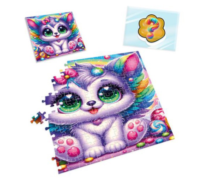 Набір пазлів "Кошеня з крилами" - це захоплива можливість зібрати яскраву картинку, а за свої старання отримати ще й подарунок-сюрприз у вигляді сквішика-рандомки! У комплекті 180 різноманітних деталей, виготовлених із міцного картону. Пазли допомагають розвивати логічне мислення, дрібну моторику та посидючість. Для дітей віком від 5 років.