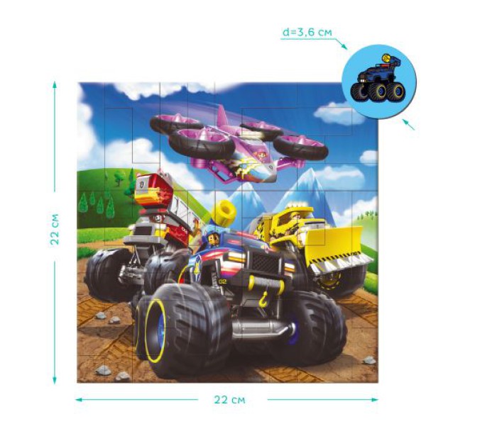 Барвисті пазли на 40 елементів характеризується ідеальною відповідністю елементів. Розмір готової картинки: 22 х 22 см. Така іграшка є веселою можливістю поглянути на те, на що здатні магніти та як гарно деталі тримаються між собою. Набір стане виграшним варіантом подарунка як для хлопчика, так і дівчинки. Розвивають логічне мислення, дрібну моторику рук, посидючість. Відмінний спосіб провести час із сімʼєю чи друзями. Для дітей віком від 5-ти років.