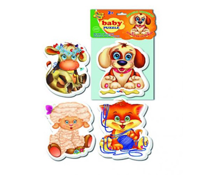 Бебі пазли "Домашні вихованці" хороший варіант пазлів для малюків. Розвивають дрібну моторику, формують знання про жівотних.Часті пазлів досить великого розміру. В комплекті 4 зображення тварин.