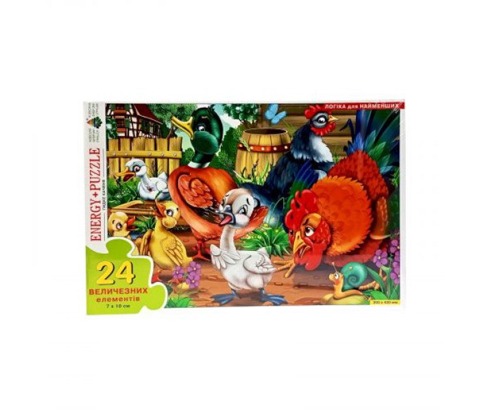 Яскраві барвисті пазли на 24 деталі (одна деталь 7х10 см.). Розмір готової картинки: 30 х 42 см. Розвивають логічне мислення, дрібну моторику рук, посидючість.
