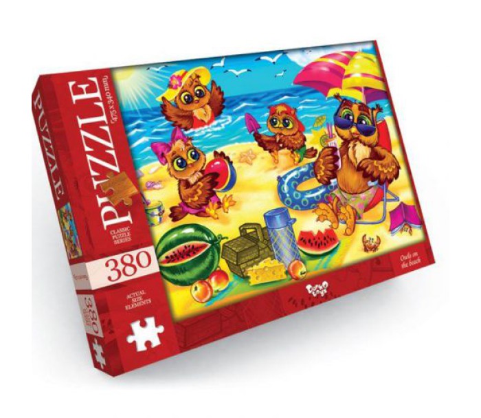 Яскраві барвисті пазли на 380 елементів. Розмір готового зображення: 47,5 х 34 см. Розвивають логічне мислення, дрібну моторику рук, посидючість.