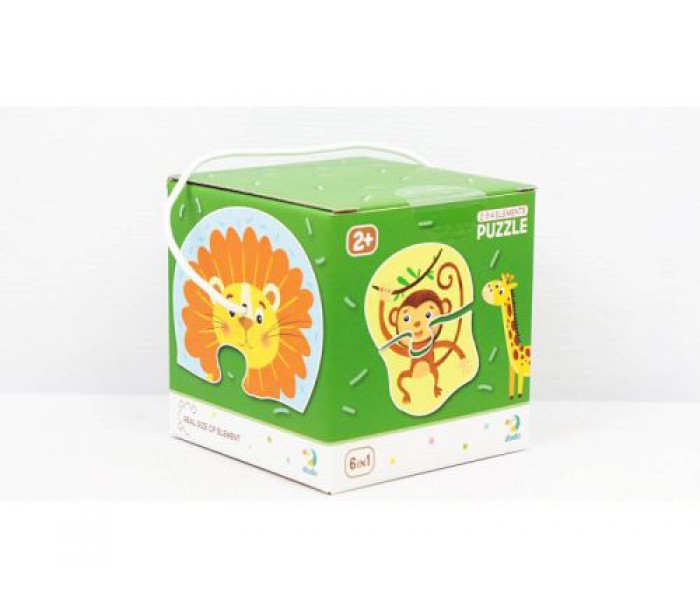 6 яскравих пазлів із зображеннями тварин, які складаються з 2-х, 3-х або 4-х елементів. Детальки великі і яскраві. Гра з пазлами допоможе малюкові вивчити різні види тварин, розвинути посидючість, увагу і дрібну моторику.