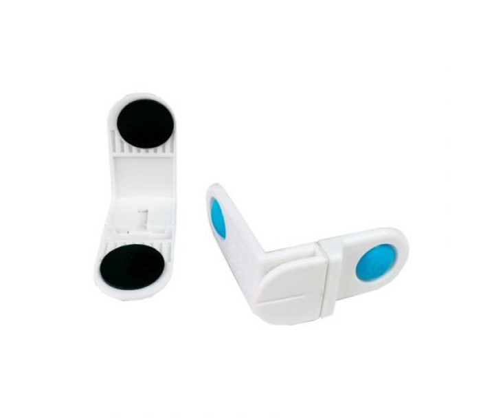 Кутовий замок-блокатор забезпечує додаткову безпеку, запобігаючи випадковому або небажаному відкриття дверей або ящиків. Ці блокатори легко кріпляться на рівні поверхні з використанням липучок, що робить установку простою та безпроблемною. Такі пристрої призначені для захисту дітей від доступу до небезпечних предметів або предметів, що знаходяться всередині меблів.