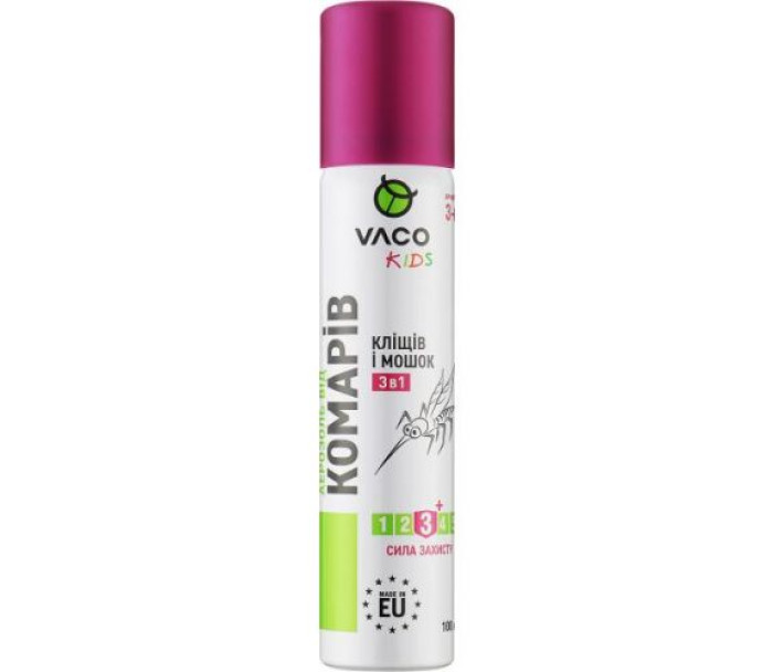 Зручний формат аерозолю дає змогу завжди мати засіб під рукою: у парку, на пляжі чи лісі. Спрей Vaco Kids не тільки ефективний, а й безпечний для дитячої шкіри, що пройшов усі необхідні випробування та тести. Не містить шкідливих для здоровʼя та навколишнього середовища компонентів, що робить його ідеальним вибором для дбайливих батьків.