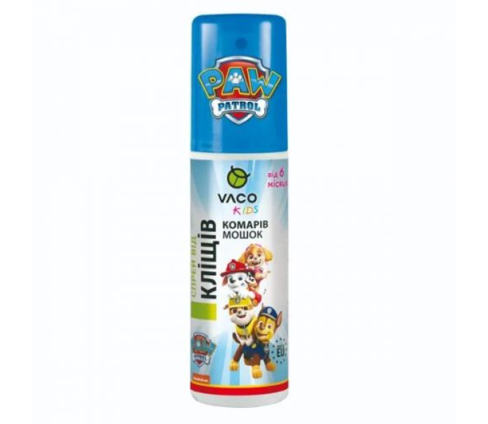 Vaco Kids Paw Patrol Sensitive Спрей від комарів, кліщів і мошок з Icaridin 10%, для дітей від 6 місяців, 80 мл