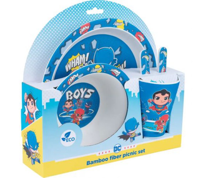 Набір бамбукового посуду містить пʼять предметів: глибоку та мілку тарілки, чашку, ложку та виделку. Він підходить для подачі як гарячих, так і холодних напоїв та страв. Посуд виготовлений з екологічно чистого матеріалу природного походження, що робить його безпечним та стійким до впливу температур.